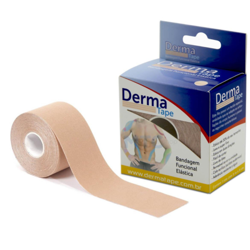 O Derma Tape, conhecido como Bandagem Funcional Elástica da BIOLAND, é uma fita adesiva elástica projetada para auxiliar na recuperação de lesões esportivas, oferecendo reforço muscular. É uma técnica de “tapes” adesivos que não limita os movimentos e pode ser cortada em tamanhos personalizados para diversas aplicações.