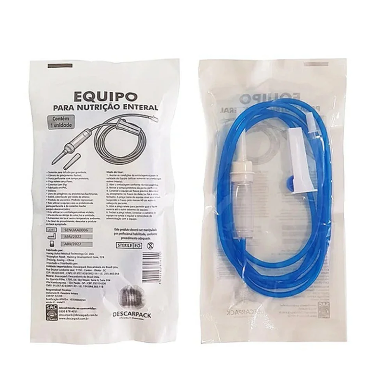 O Equipo para Alimentação Enteral Luer Slip da Descarpack é indicado para a administração de nutrientes ou soluções enterais, em pacientes com dificuldade ou incapazes de se alimentar pela boca.