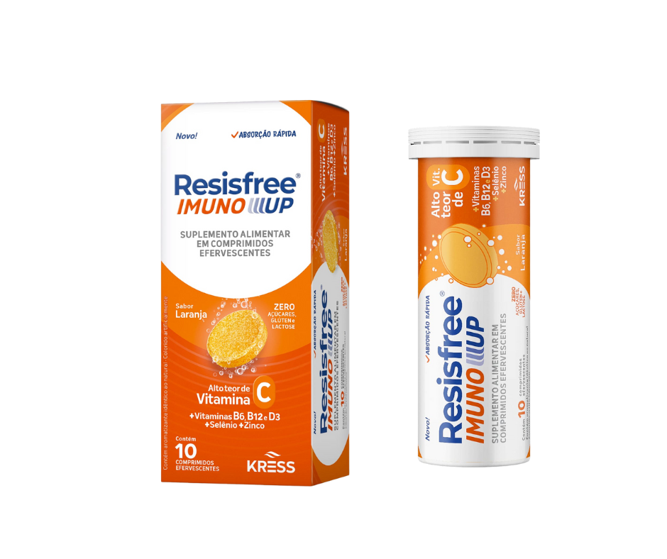Suplemento com alto teor de vitamina C + Vitamina B6, B12, D3, selêniio e zinco, indicato para auxiliar o sistema imunológico.