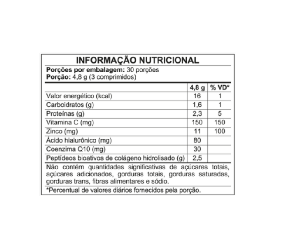 Vendas e cotações: (27) 9.9957-3955A fórmula mais completa e moderna para cuidar da saúde da pele. Formulado com Peptídeos Bioativos de Colágeno Verisol® (tecnologia alemã) + Ácido Hialurônico + Coenzima Q10 + Vitamina C + Zinco.